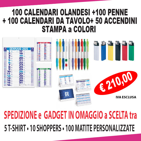 - KIT COMPRENSIVO DI 100 CALENDARI + 100 PENNE + 100 ACCENDINI