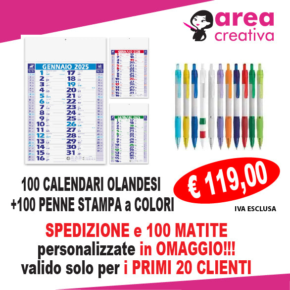 100 CALENDARI OLANDESI + 100 PENNE + OMAGGIO 100 MATITE